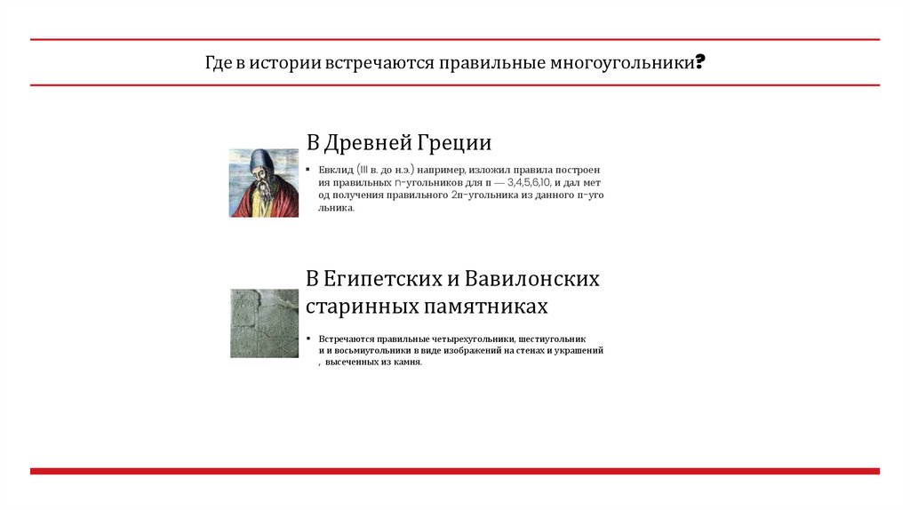 Где в истории встречаются правильные многоугольники?В Древней Греции