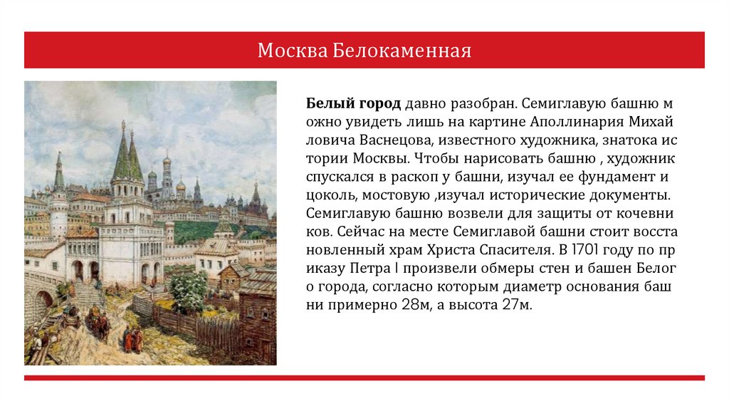 Москва БелокаменнаяБелый город давно разобран. Семиглавую башню м