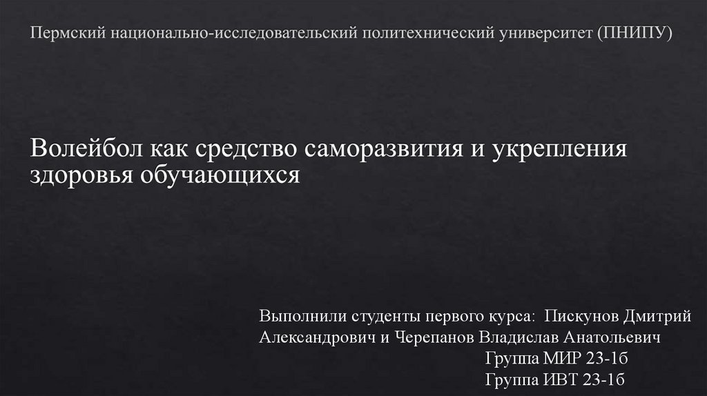Выполнили студенты первого курса: Пискунов ДмитрийАлександрович и Черепанов Владислав Анатольевич