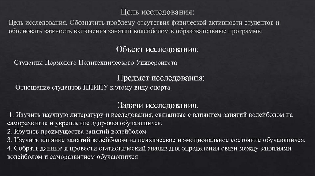 1. Изучить научную литературу и исследования, связанные с влиянием занятий волейболом на