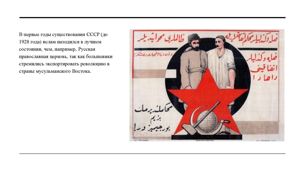 В первые годы существования СССР (до1928 года) ислам находился в лучшем