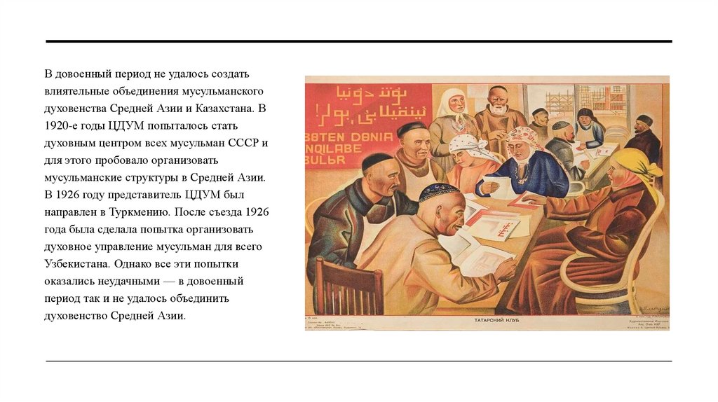 В довоенный период не удалось создатьвлиятельные объединения мусульманского