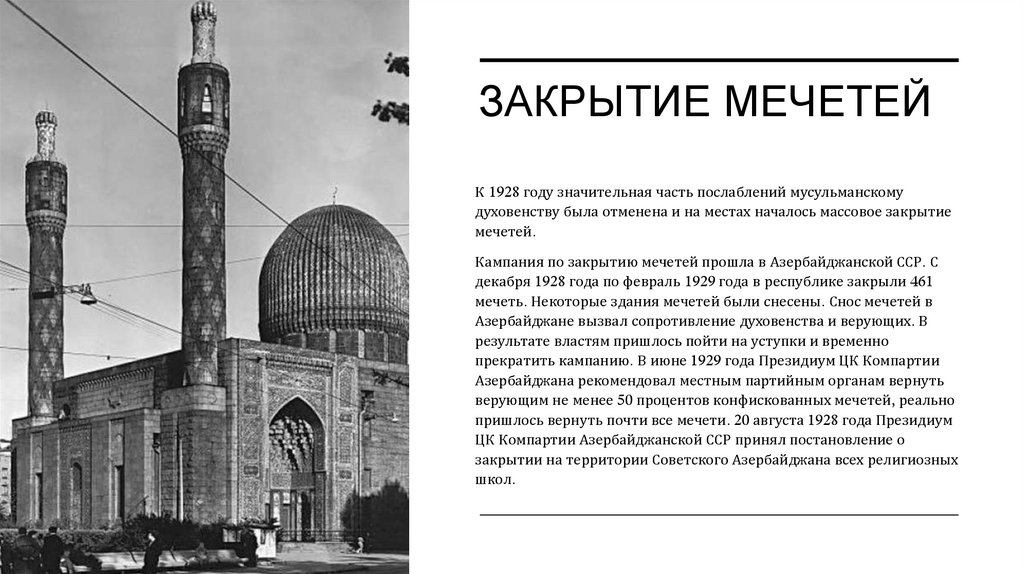 ЗАКРЫТИЕ МЕЧЕТЕЙК 1928 году значительная часть послаблений мусульманскому