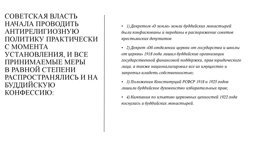 • 1) Декретом «О земле» земли буддийских монастырей