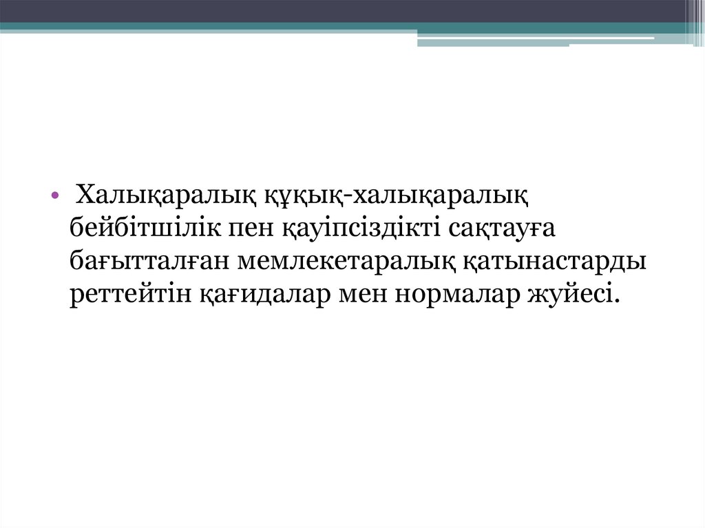 • Халықаралық құқық-халықаралықбейбітшілік пен қауіпсіздікті сақтауға