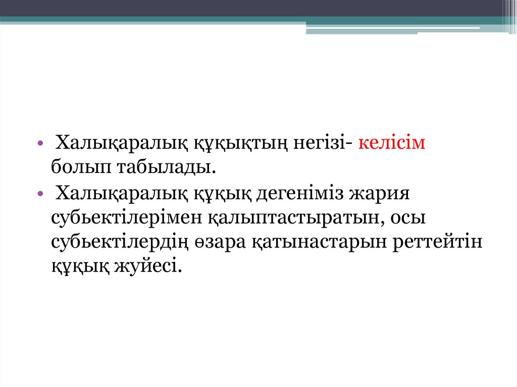 • Халықаралық құқықтың негізі- келісімболып табылады.