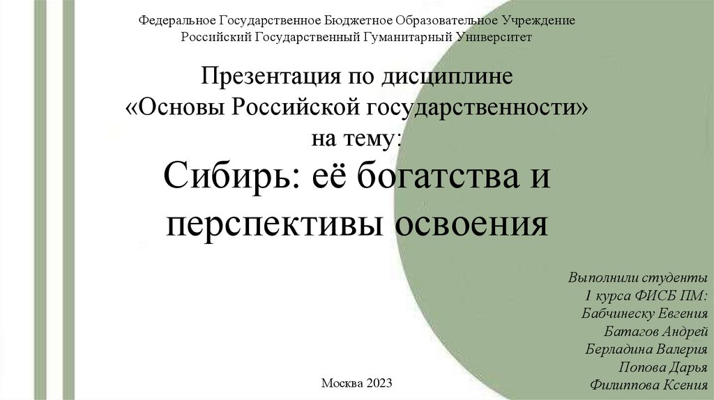 Федеральное Государственное Бюджетное Образовательное УчреждениеРоссийский Государственный Гуманитарный Университет