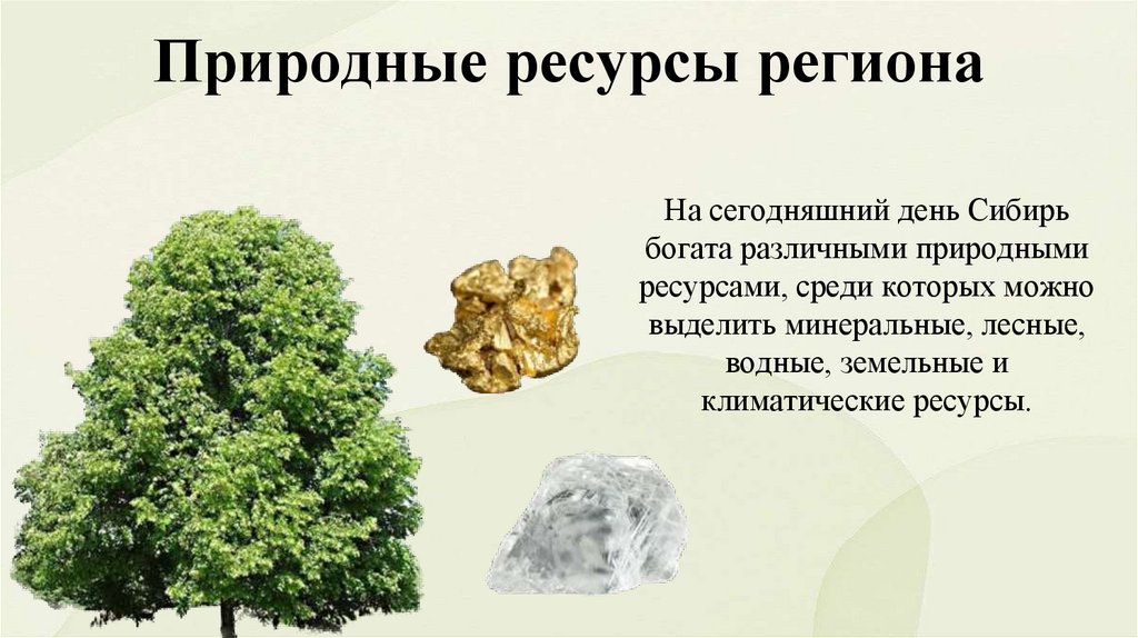 Природные ресурсы регионаНа сегодняшний день Сибирь