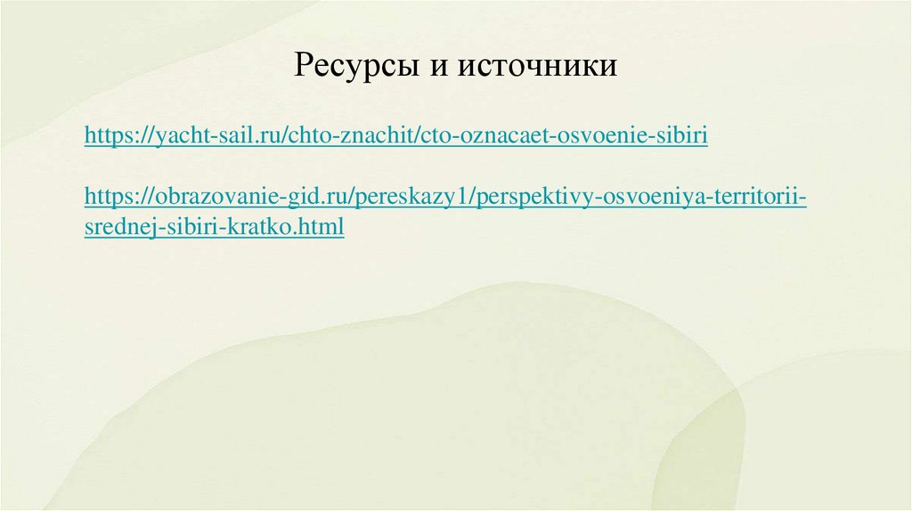 Ресурсы и источникиhttps://yacht-sail.ru/chto-znachit/cto-oznacaet-osvoenie-sibiri