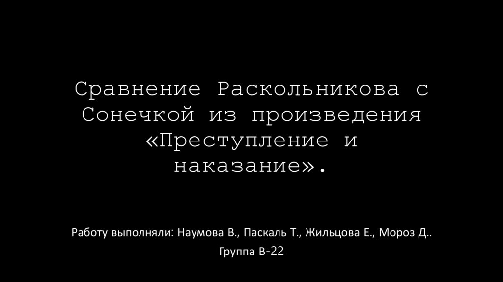 Сравнение Раскольникова с Сонечкой из произведения «Преступление и наказание»