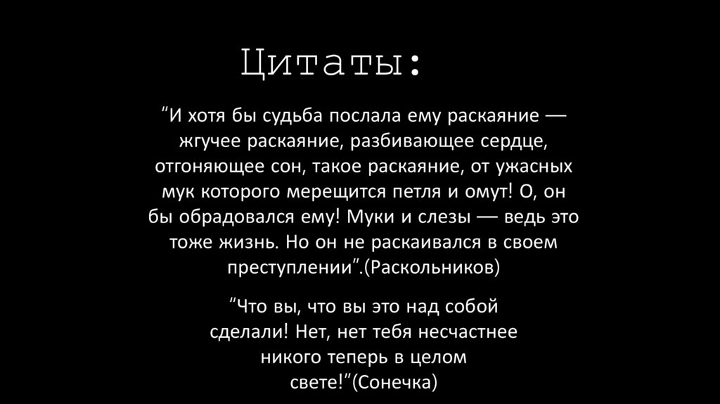 Цитаты:“И хотя бы судьба послала ему раскаяние —
