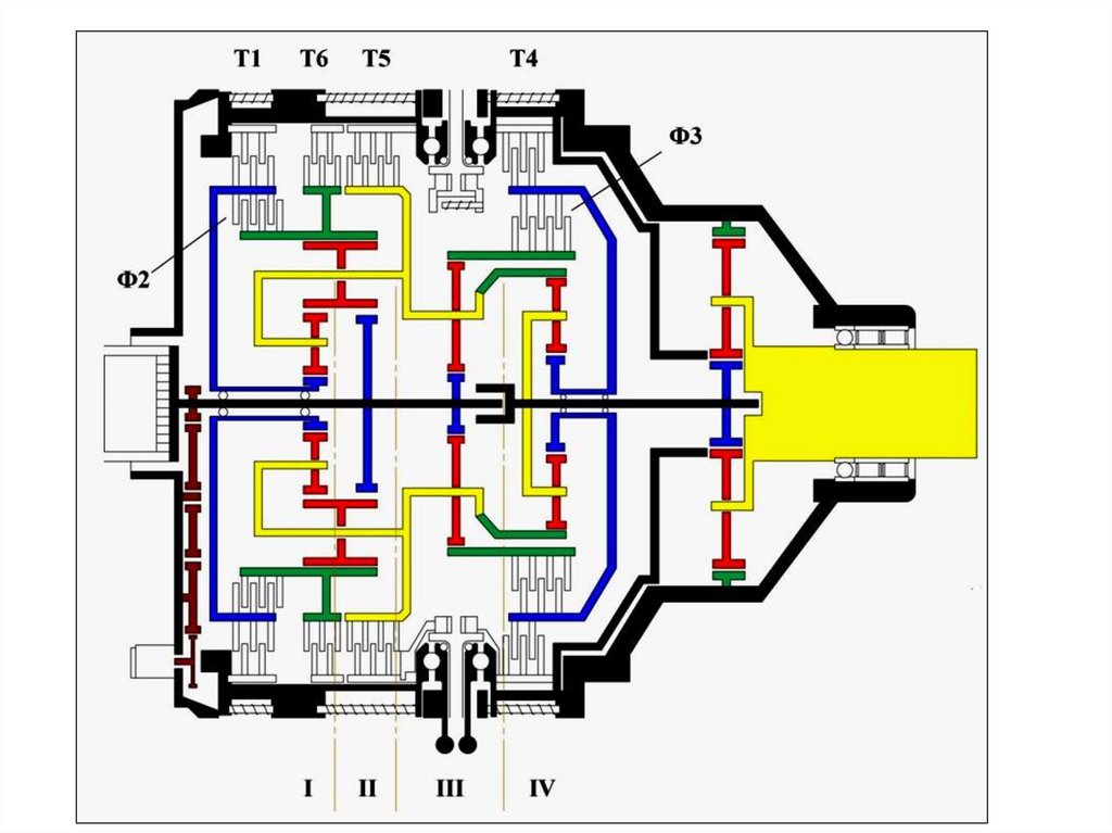В I планетарном ряду эпицикл отсутствует.I, II и III ряды имеют общее водило.