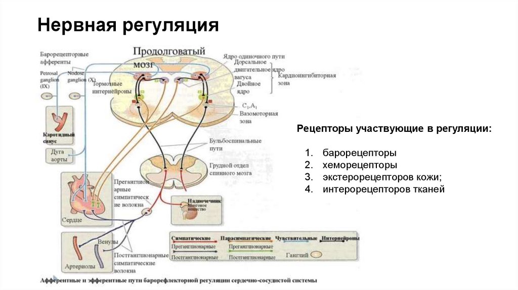Нервная регуляцияРецепторы участвующие в регуляции: