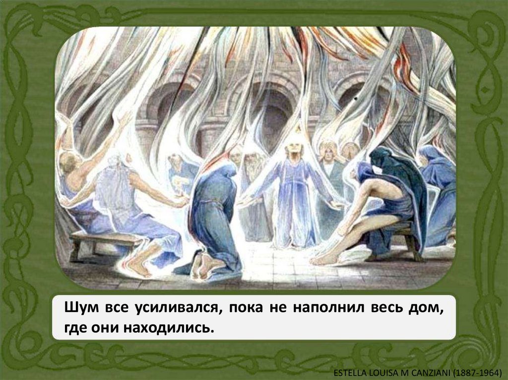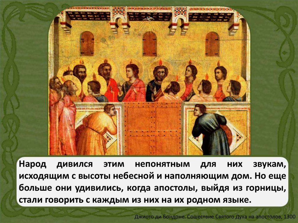Народ дивился этим непонятным для них звукам,исходящим с высоты небесной и наполняющим дом. Но еще