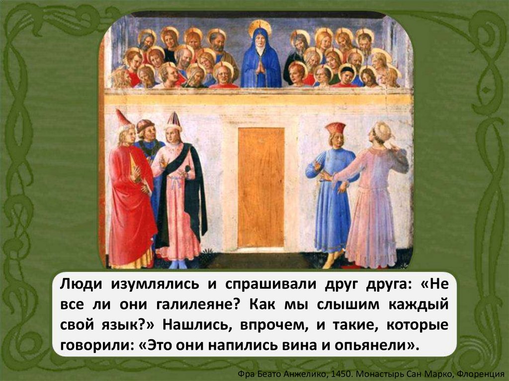 Люди изумлялись и спрашивали друг друга: «Невсе ли они галилеяне? Как мы слышим каждый