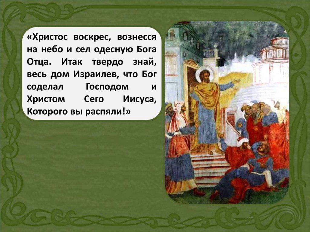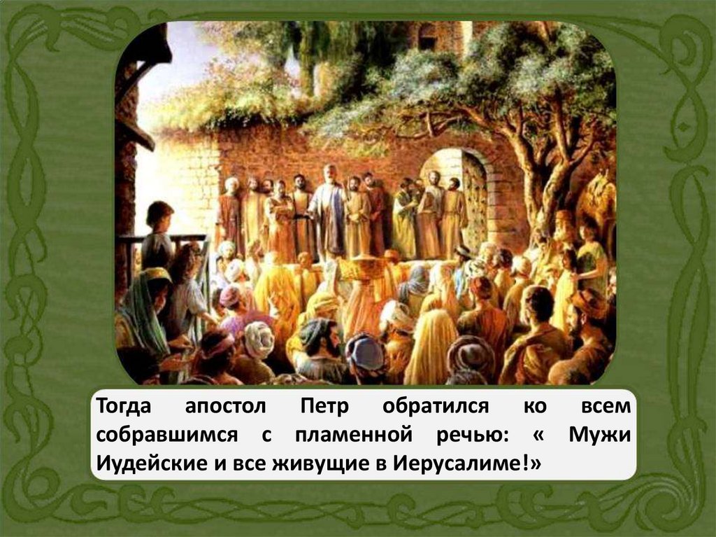 Тогда апостол Петр обратился ко всемсобравшимся с пламенной речью: « Мужи