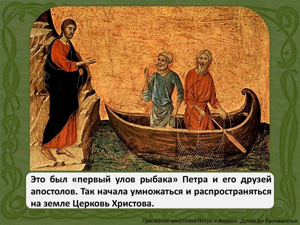 Это был «первый улов рыбака» Петра и его друзейапостолов. Так начала умножаться и распространяться