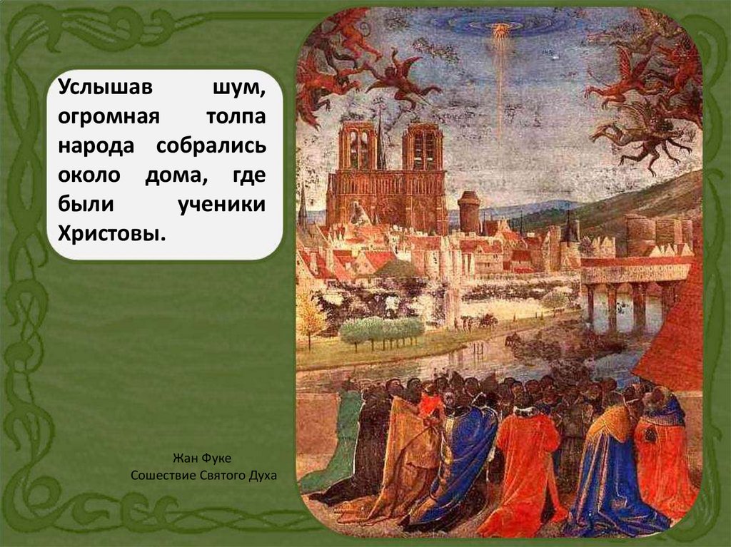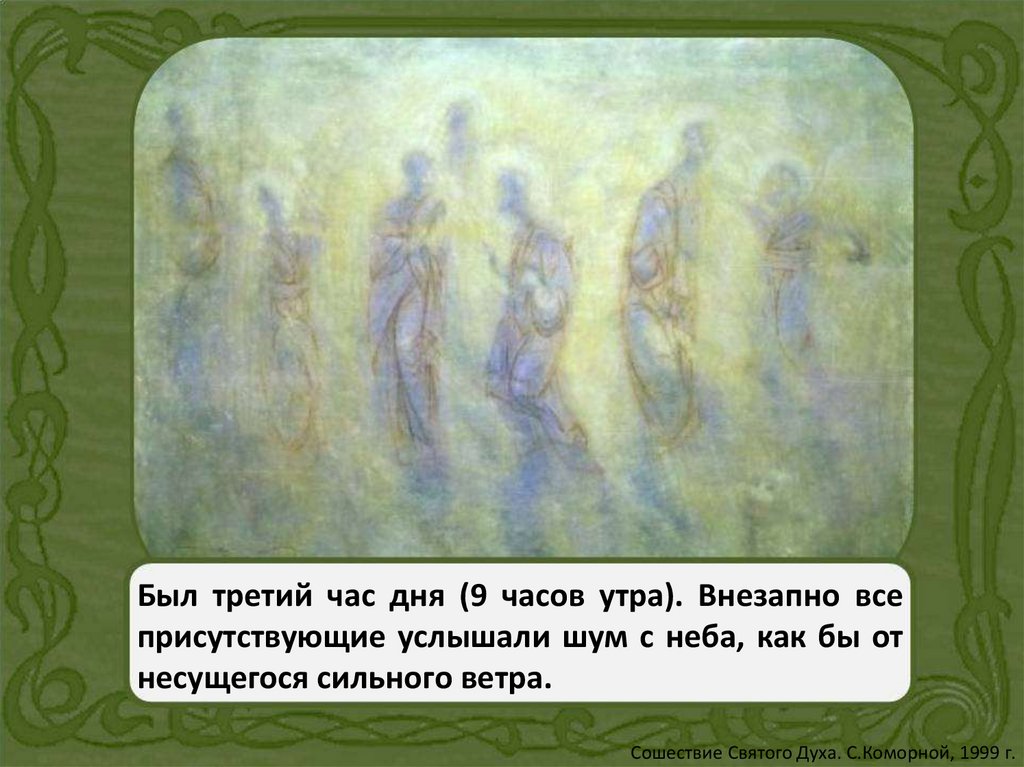 Был третий час дня (9 часов утра). Внезапно всеприсутствующие услышали шум с неба, как бы от