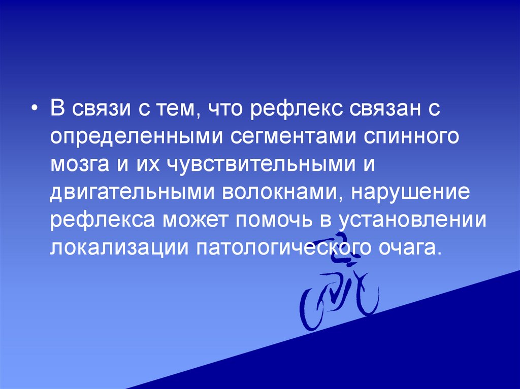 • В связи с тем, что рефлекс связан сопределенными сегментами спинного