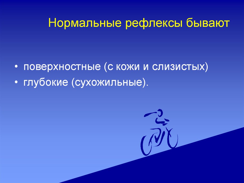 Нормальные рефлексы бывают• поверхностные (с кожи и слизистых)