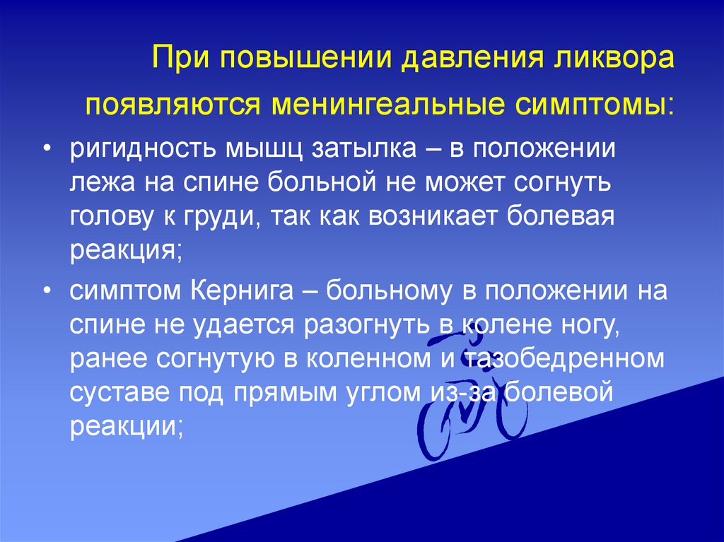 При повышении давления ликворапоявляются менингеальные симптомы: