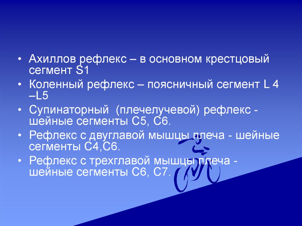 • Ахиллов рефлекс – в основном крестцовыйсегмент S1