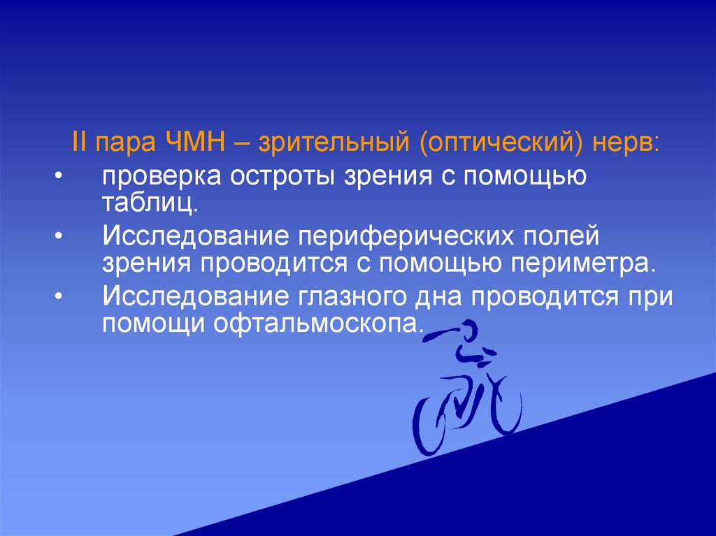 II пара ЧМН – зрительный (оптический) нерв:• проверка остроты зрения с помощью