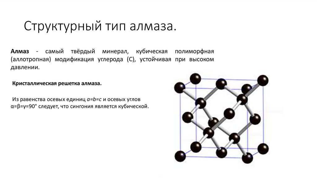 Структурный тип алмаза.Алмаз - самый твёрдый минерал, кубическая полиморфная