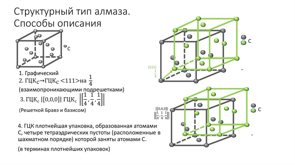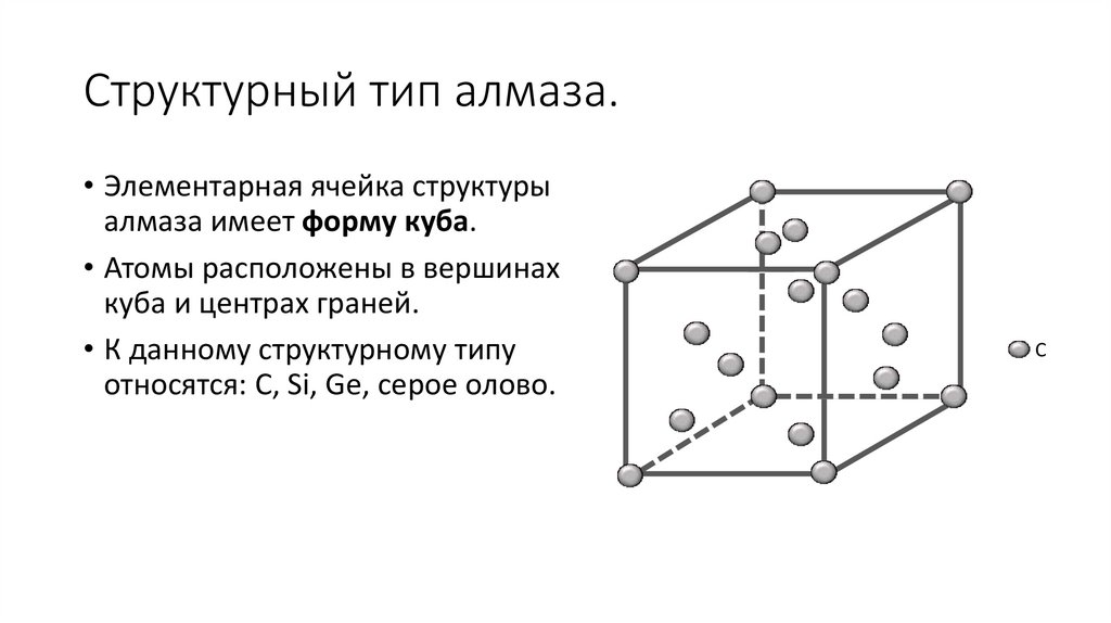 Структурный тип алмаза.• Элементарная ячейка структуры