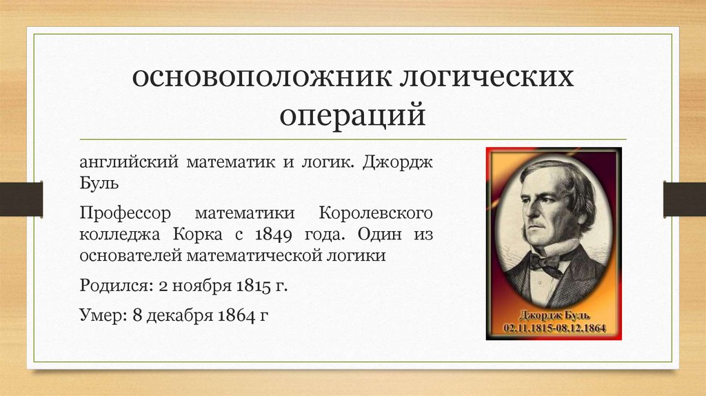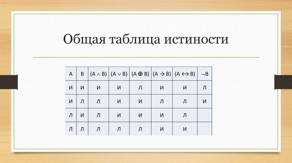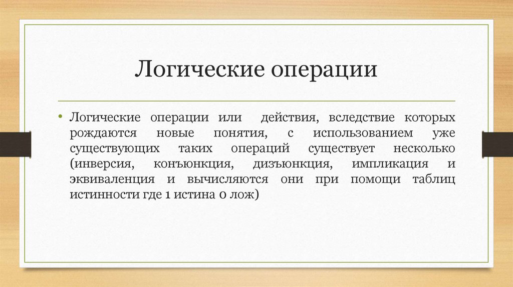 (инверсия, конъюнкция, дизъюнкция, импликация и