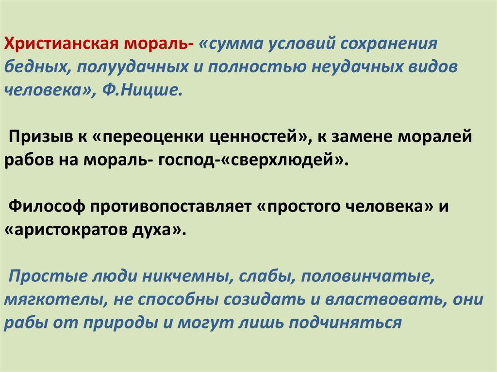 Христианская мораль- «сумма условий сохранениябедных, полуудачных и полностью неудачных видов
