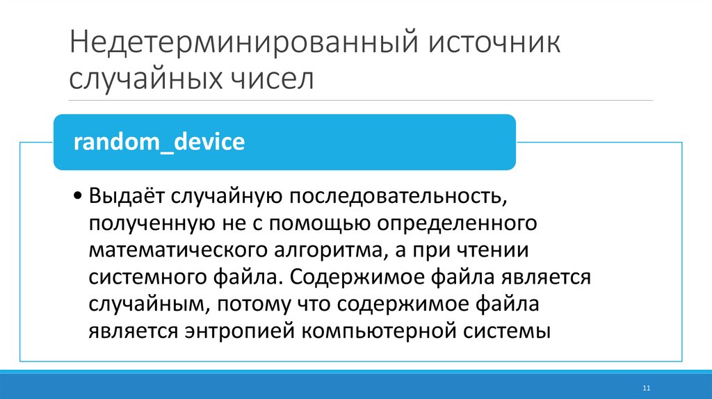 имитировать случайность, что достигается с помощью генераторов псевдослучайных