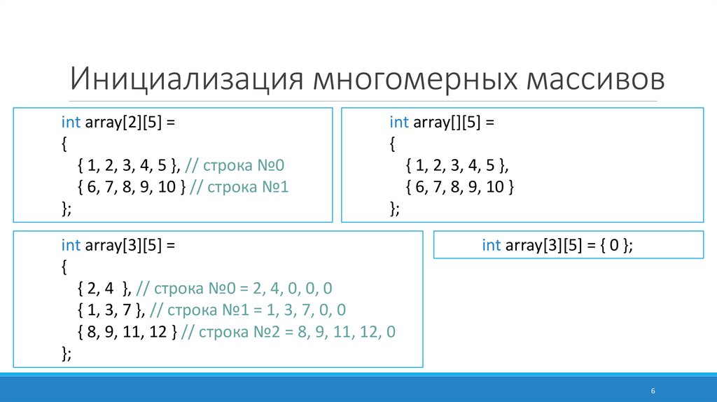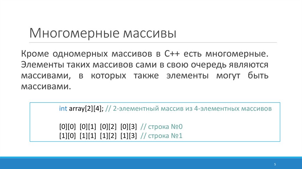 Многомерные массивыКроме одномерных массивов в C++ есть многомерные.