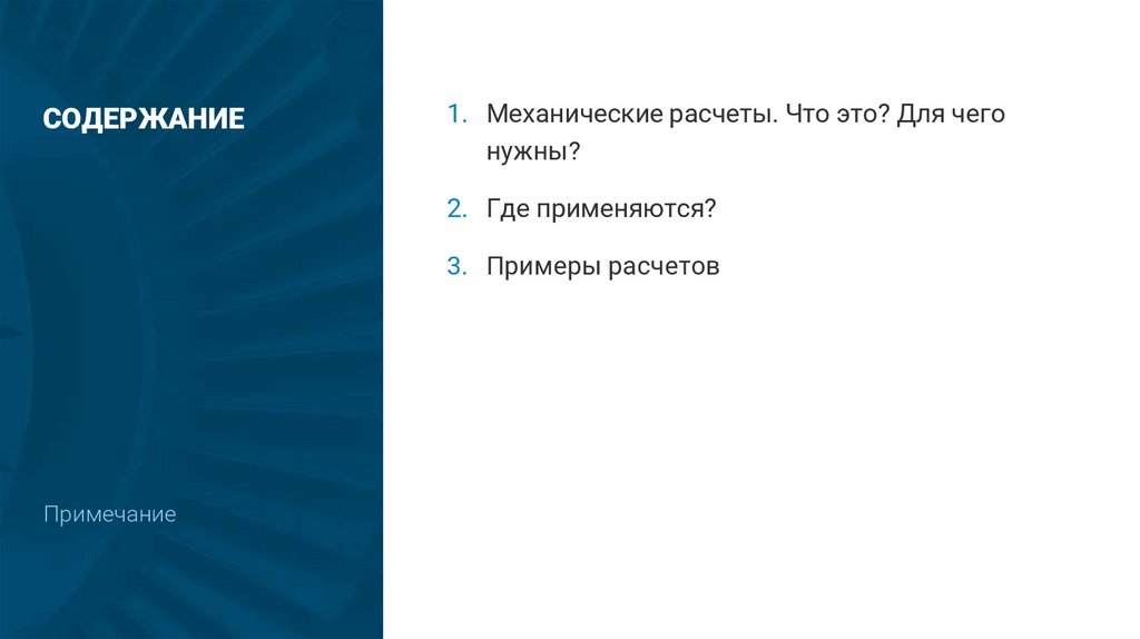 СОДЕРЖАНИЕ1. Механические расчеты. Что это? Для чего