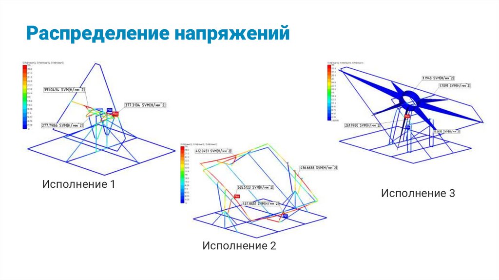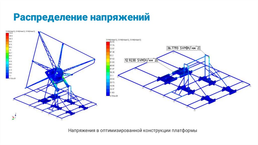 Распределение напряженийНапряжения в оптимизированной конструкции платформы