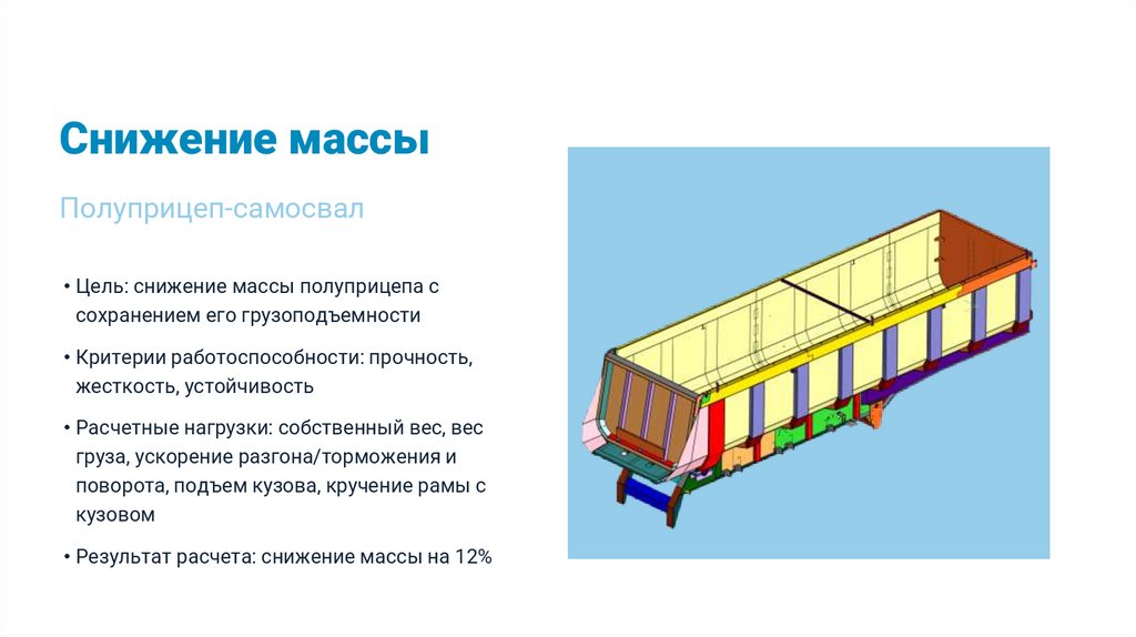 Расчетная модель полуприцепа-самосвалаРасчетный случай 1