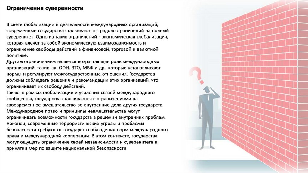 Ограничения суверенностиВ свете глобализации и деятельности международных организаций,