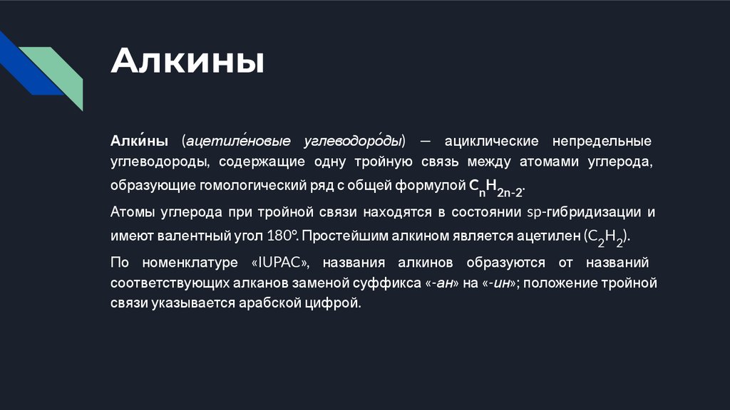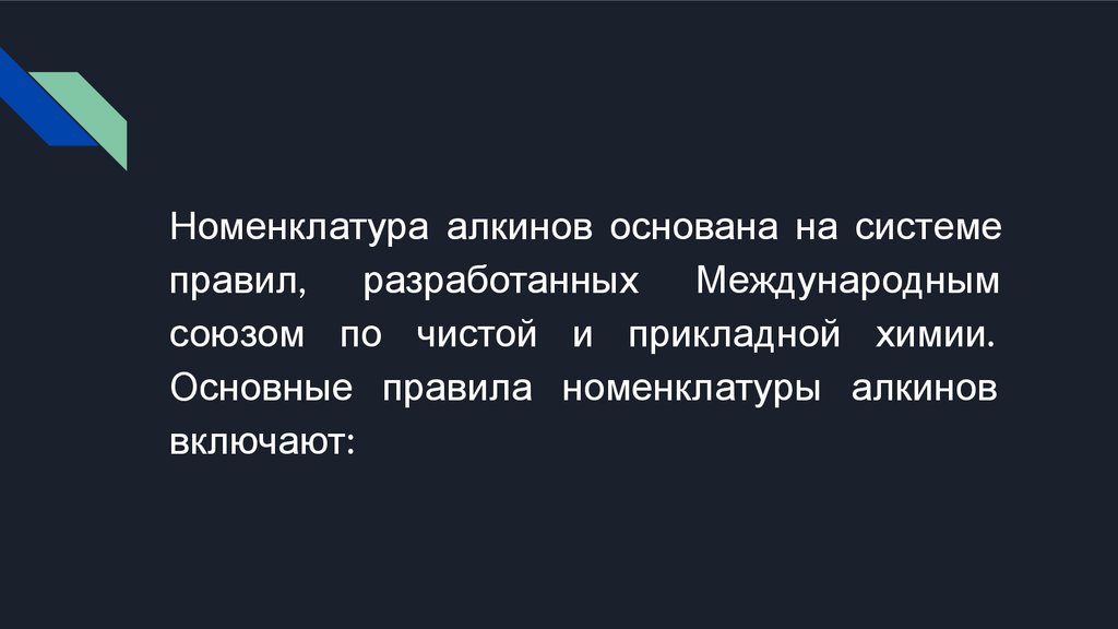 Номенклатура алкинов основана на системеправил, разработанных Международным