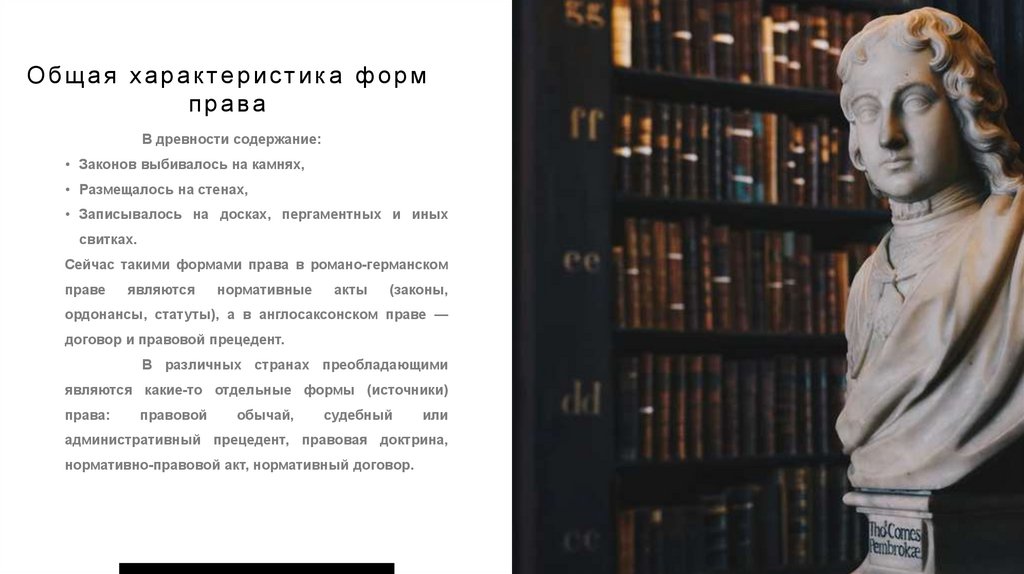 О б щ а я ха р а к те р и с т и к а ф о р м и с точ н и к о вИсточники права