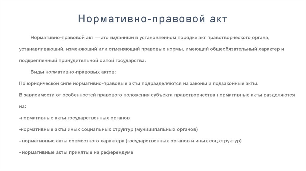 Нормативно -правовой актНормативно-правовой акт — это изданный в установленном порядке акт правотворческого органа,