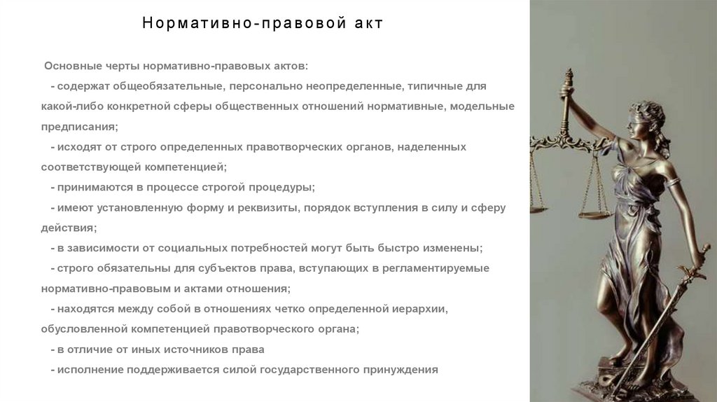 Нормативно-правовой ак тОсновные черты нормативно-правовых актов: