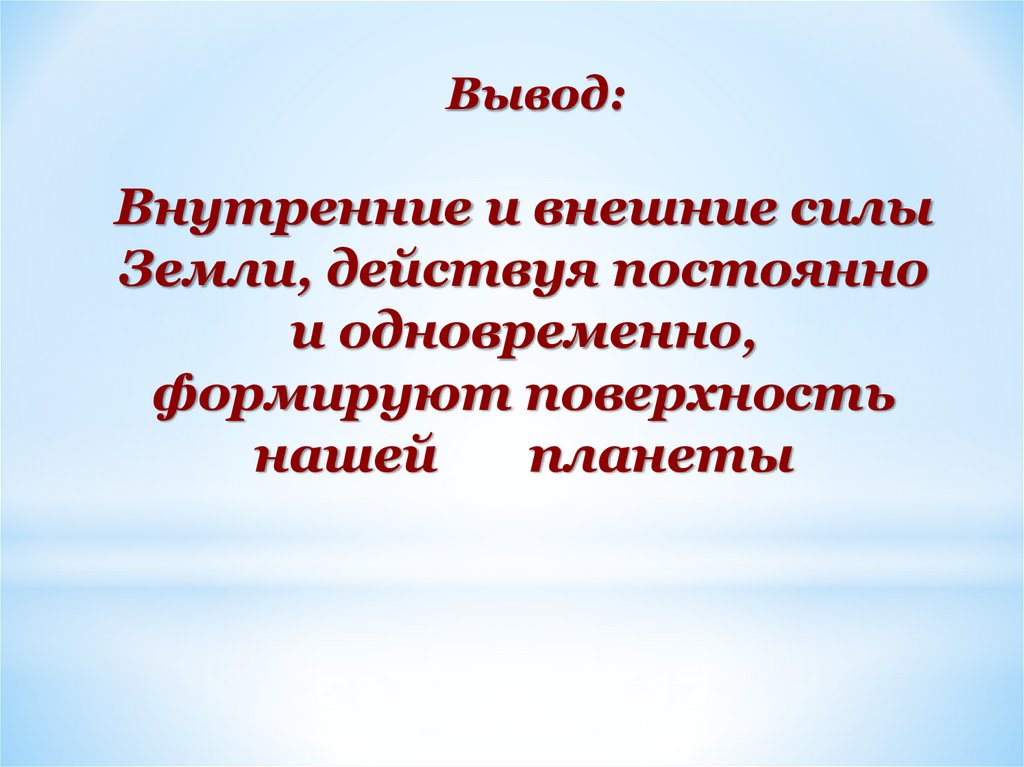 4. Назовите внутренние силы, изменяющие лик Земли.