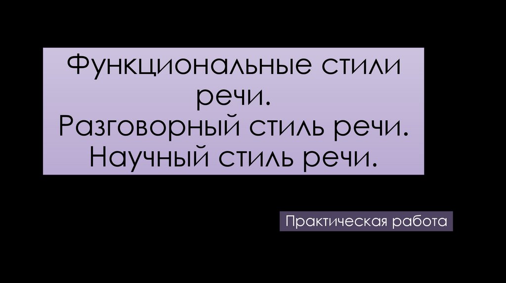 Функциональные стили речи. Разговорный стиль речи. Научный стиль речи. Практическая работа