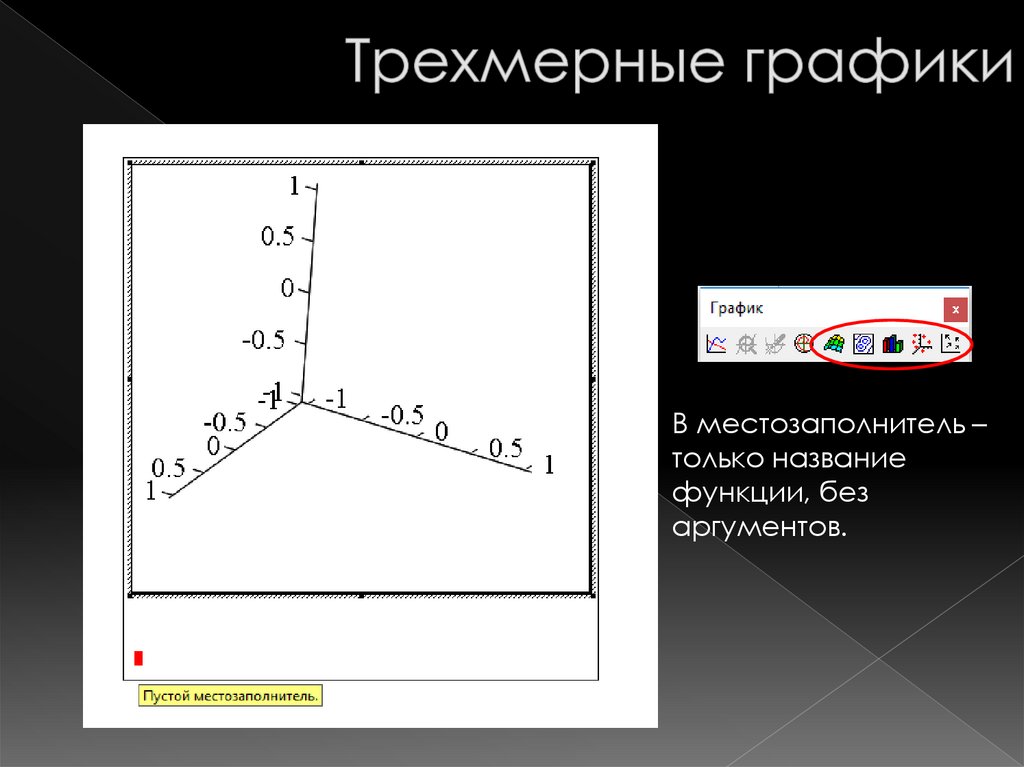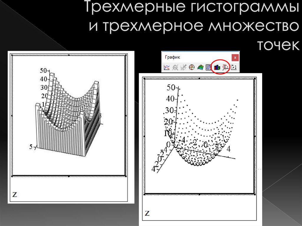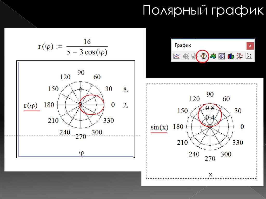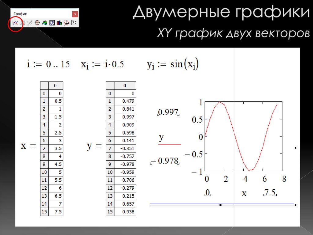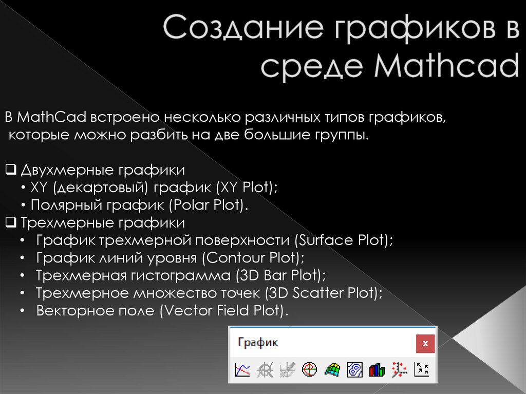 В MathCad встроено несколько различных типов графиков,которые можно разбить на две большие группы.