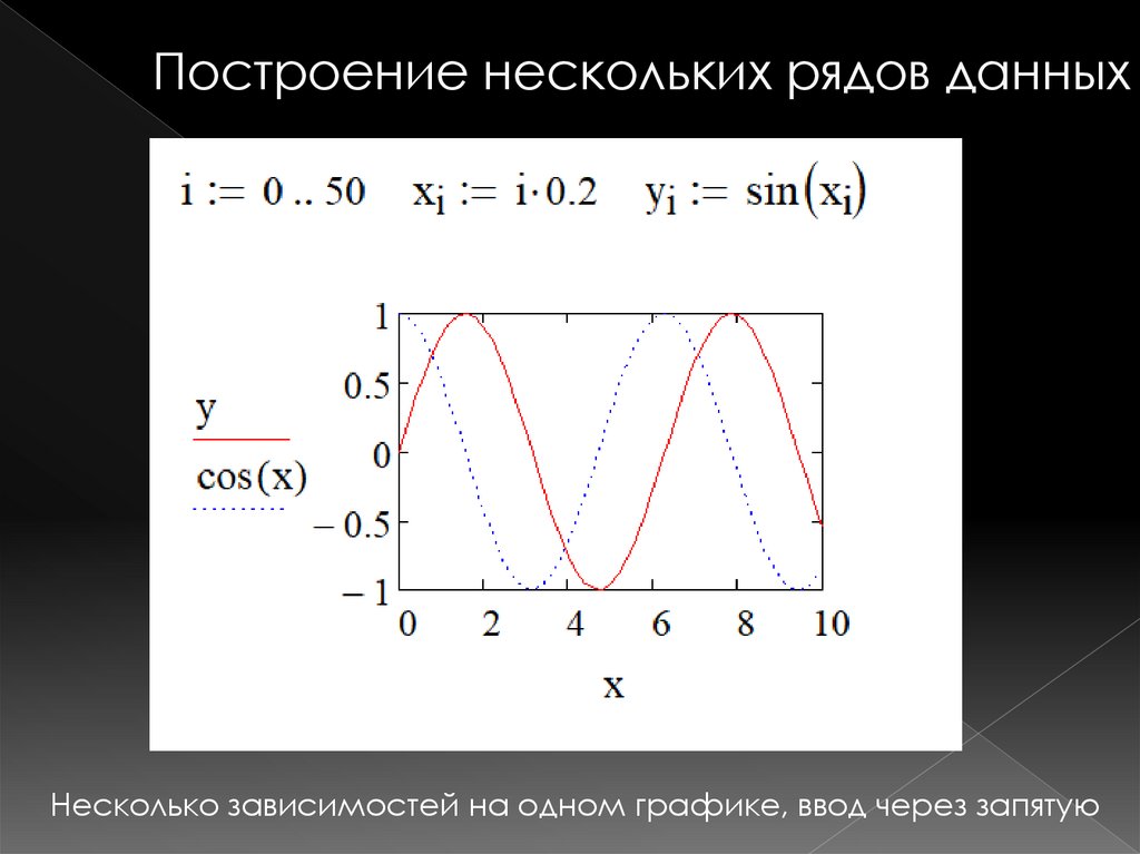 Построение нескольких рядов данныхНесколько зависимостей на одном графике, ввод через запятую
