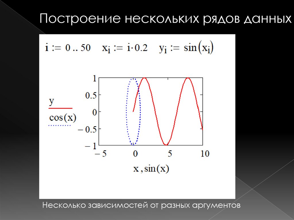 Построение нескольких рядов данныхНесколько зависимостей от разных аргументов