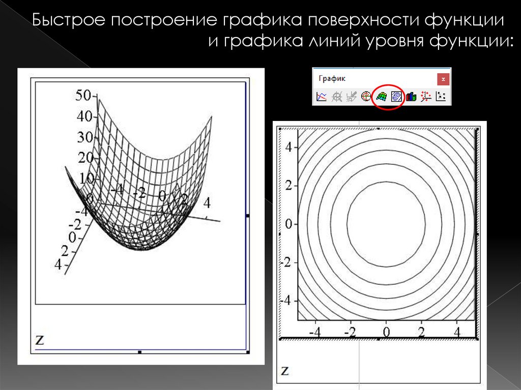 Быстрое построение графика поверхности функциии графика линий уровня функции: