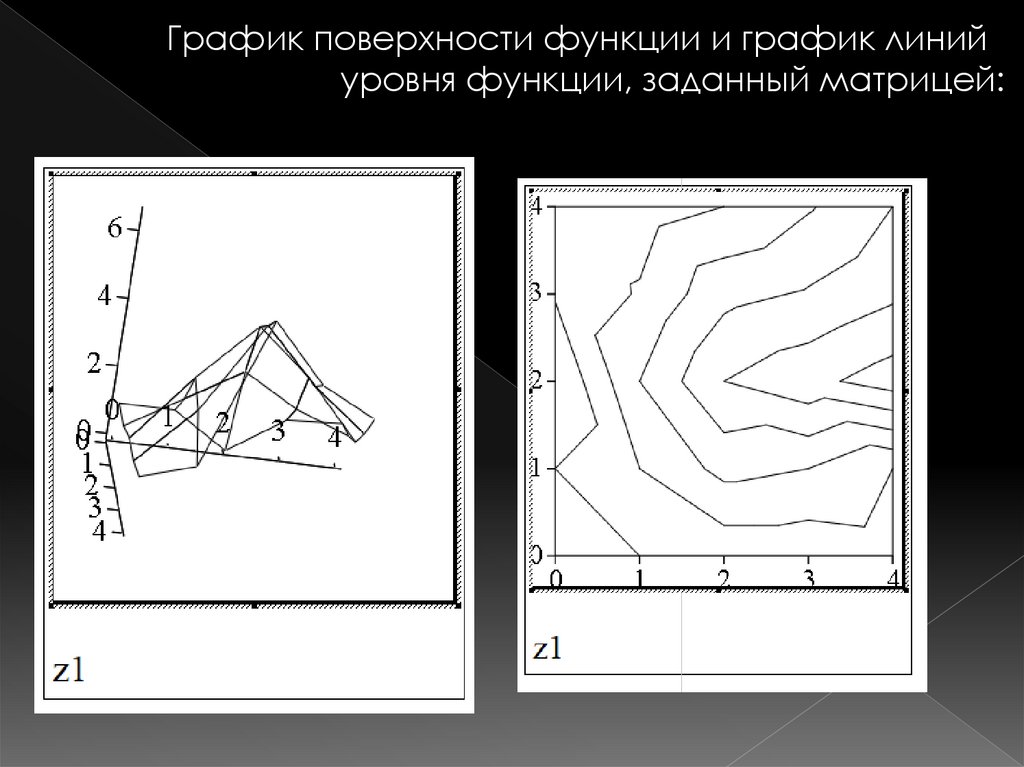 График поверхности функции и график линийуровня функции, заданный матрицей:
