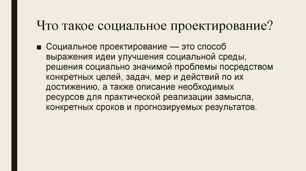 Что такое социальное проектирование?■ Социальное проектирование — это способ