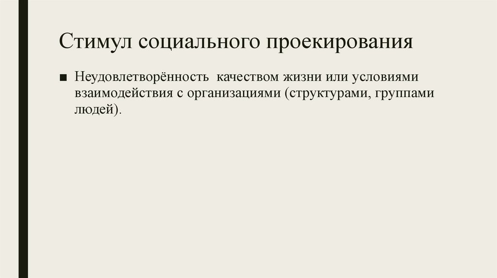 Стимул социального проекирования■ Неудовлетворённость качеством жизни или условиями